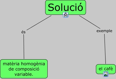 Este Cmap, tiene información relacionada con: Solució, Solució exemple el cafè, Solució és matèria homogènia de composició variable.