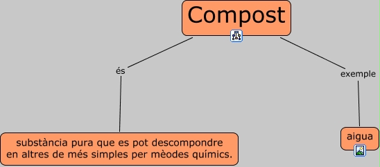 Este Cmap, tiene información relacionada con: compost, Compost és substància pura que es pot descompondre en altres de més simples per mèodes químics., Compost exemple aigua