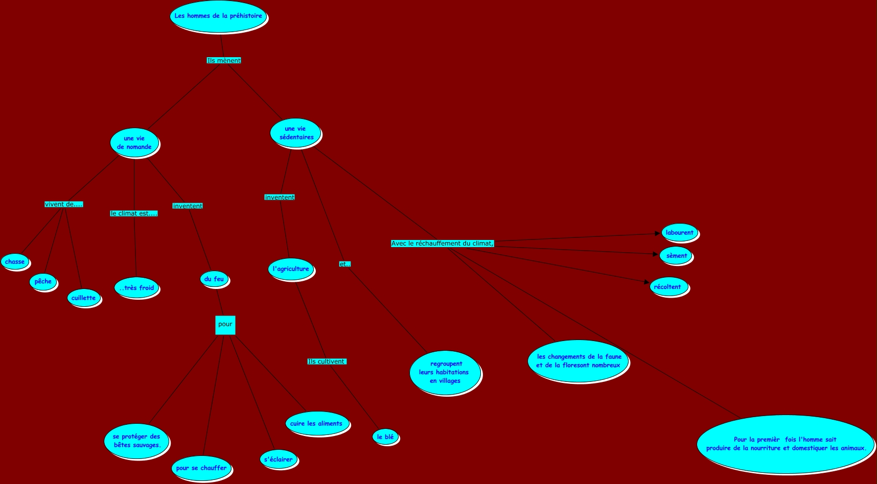 Este mapa conceptual tiene información relacionada a: david1, l'agriculture Ils cultivent le blé, une vie sédentaires Avec le réchauffement du climat, les changements de la faune et de la floresont nombreux, une vie sédentaires Avec le réchauffement du climat, labourent, du feu pour s'éclairer, une vie de nomande le climat est.... ..très froid, Les hommes de la préhistoire Ils mènent une vie de nomande, une vie sédentaires Avec le réchauffement du climat, récoltent, du feu pour pour se chauffer, Les hommes de la préhistoire Ils mènent une vie sédentaires, une vie sédentaires Avec le réchauffement du climat, Pour la premièr fois l'homme sait produire de la nourriture et domestiquer les animaux.