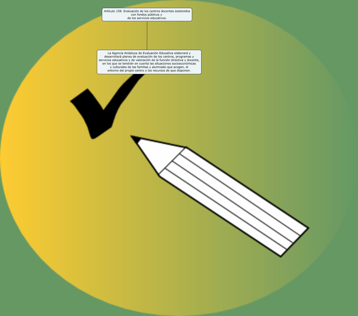 Este Cmap, tiene información relacionada con: LEA_art158, Artículo 158. Evaluación de los centros docentes sostenidos con fondos públicos y de los servicios educativos. ???? La Agencia Andaluza de Evaluación Educativa elaborará y desarrollará planes de evaluación de los centros, programas y servicios educativos y de valoración de la función directiva y docente, en los que se tendrán en cuenta las situaciones socioeconómicas y culturales de las familias y alumnado que acogen, el entorno del propio centro y los recursos de que disponen.
