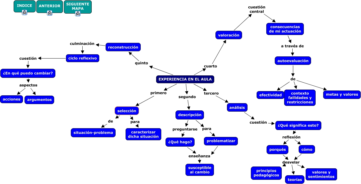 Este Cmap, tiene información relacionada con: fases del ciclo de enseñanza reflexiva, autoevaluación de contexto failidades y restricciones, ¿En qué puedo cambiar? aspectos acciones, EXPERIENCIA EN EL AULA quinto reconstrucción, cómo desvelar principios pedagógicos, autoevaluación de efectividad, análisis cuestión ¿Qué significa esto?, EXPERIENCIA EN EL AULA segundo descripción, reconstrucción culminación ciclo reflexivo, cómo desvelar teorías, porqués desvelar valores y sentimientos, selección para caracterizar dicha situación, problematizar enseñanza susceptible al cambio, ¿Qué significa esto? reflexión porqués, consecuencias de mi actuación a través de autoevaluación, EXPERIENCIA EN EL AULA cuarto valoración, valoración cuestión central consecuencias de mi actuación, ¿Qué significa esto? reflexión cómo, ciclo reflexivo cuestión ¿En qué puedo cambiar?, descripción para problematizar, EXPERIENCIA EN EL AULA tercero análisis