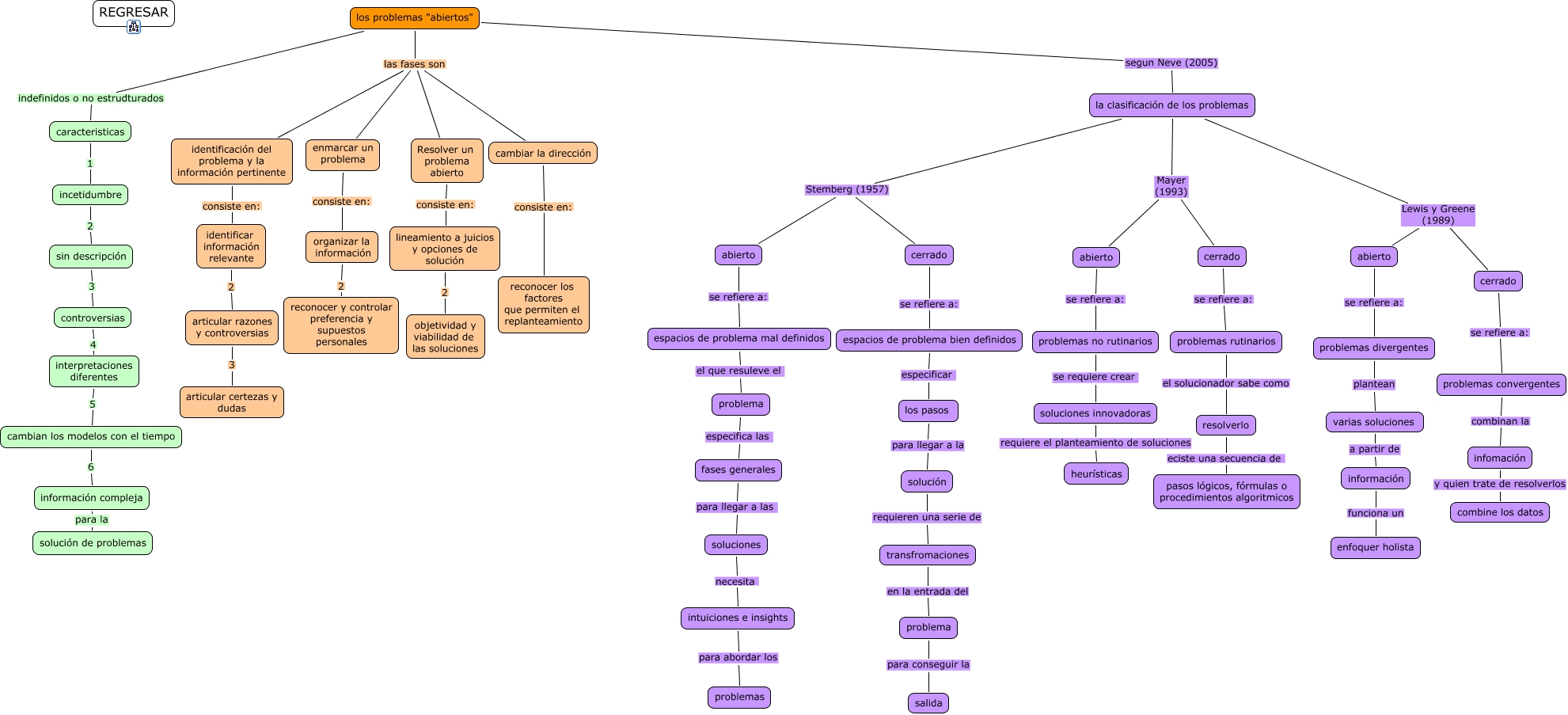 Este Cmap, tiene información relacionada con: cap 3, subt 3, resolverlo eciste una secuencia de pasos lógicos, fórmulas o procedimientos algoritmicos, información compleja para la solución de problemas, lineamiento a juicios y opciones de solución 2 objetividad y viabilidad de las soluciones, cerrado se refiere a: espacios de problema bien definidos, varias soluciones a partir de información, abierto se refiere a: espacios de problema mal definidos, infomación y quien trate de resolverlos combine los datos, sin descripción 3 controversias, la clasificación de los problemas Mayer (1993) cerrado, la clasificación de los problemas Stemberg (1957) abierto, información funciona un enfoquer holista, problema especifica las fases generales, transfromaciones en la entrada del problema, problemas no rutinarios se requiere crear soluciones innovadoras, los problemas "abiertos" segun Neve (2005) la clasificación de los problemas, soluciones innovadoras requiere el planteamiento de soluciones heurísticas, los problemas "abiertos" indefinidos o no estrudturados caracteristicas, interpretaciones diferentes 5 cambian los modelos con el tiempo, caracteristicas 1 incetidumbre, los problemas "abiertos" las fases son enmarcar un problema