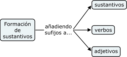 Este Cmap, tiene información relacionada con: formacion de sustantivos, Formación de sustantivos añadiendo sufijos a... verbos, Formación de sustantivos añadiendo sufijos a... sustantivos, Formación de sustantivos añadiendo sufijos a... adjetivos