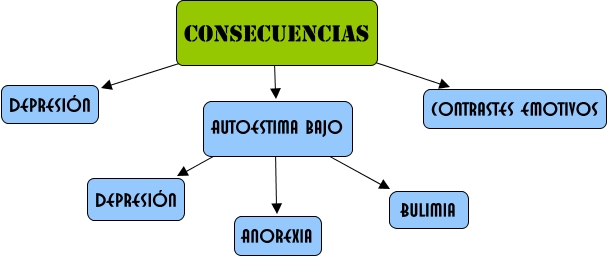 Este Cmap, tiene información relacionada con: consecuencias, Autoestima bajo ???? Anorexia, Autoestima bajo ???? Bulimia, Consecuencias ???? Depresión, Consecuencias ???? Contrastes emotivos, Autoestima bajo ???? Depresión, Consecuencias ???? Autoestima bajo