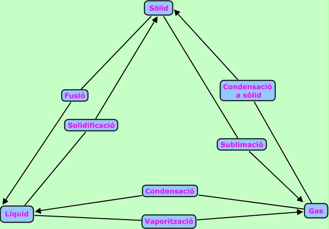 Este Cmap, tiene información relacionada con: llei dels gasos, Gas Condensació a sòlid Sòlid, Gas Condensació Líquid, Sòlid Fusió Líquid, Líquid Solidificació Sòlid, Líquid Vaporització Gas, Sòlid Sublimació Gas