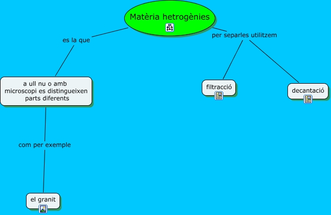 Este Cmap, tiene información relacionada con: matèria heterògenia, a ull nu o amb microscopi es distingueixen parts diferents com per exemple el granit, Matèria hetrogènies es la que a ull nu o amb microscopi es distingueixen parts diferents, Matèria hetrogènies per separles utilitzem decantació, Matèria hetrogènies per separles utilitzem filtracció
